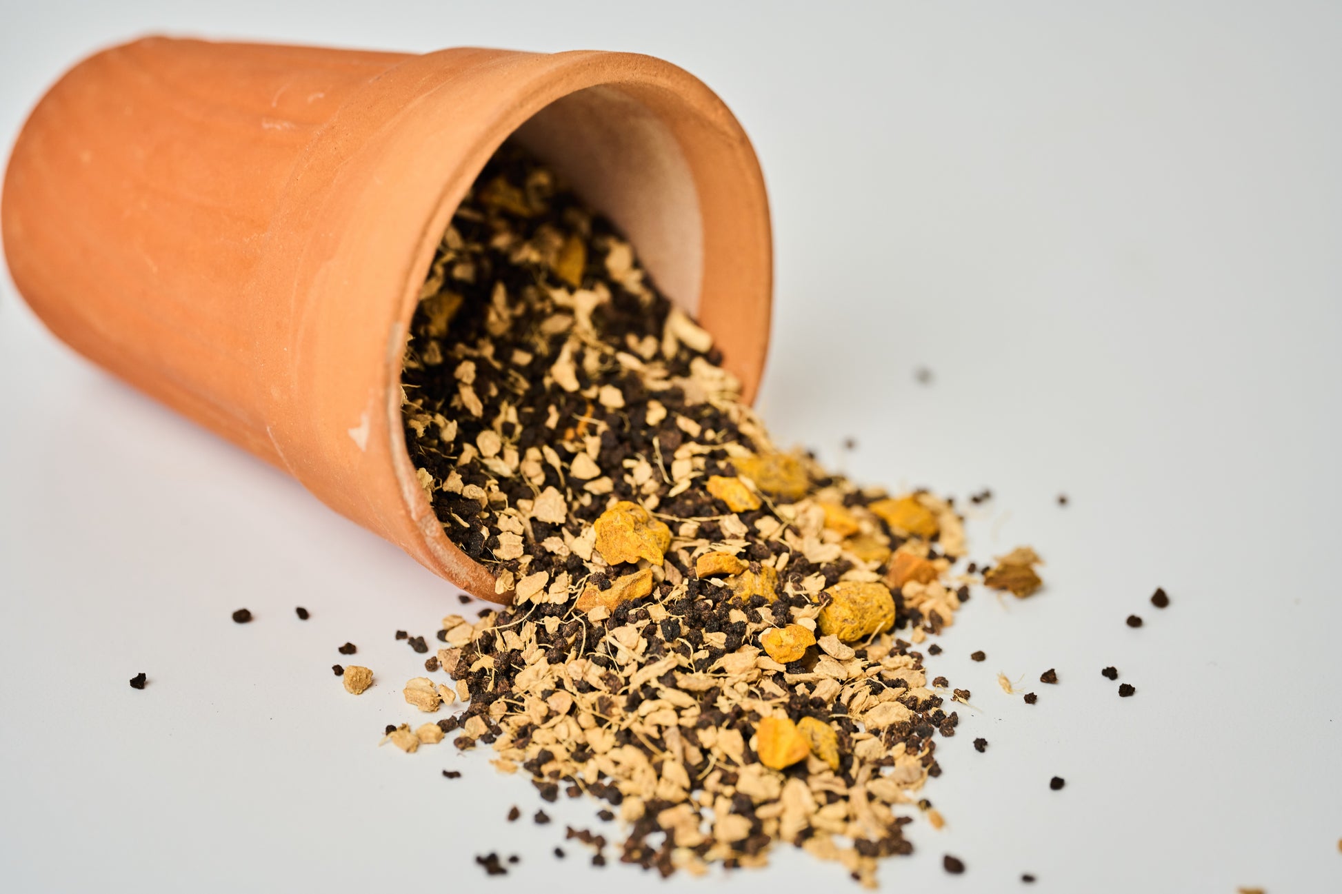 single-origin assamese loose leaf black tea with ginger root and turmeric